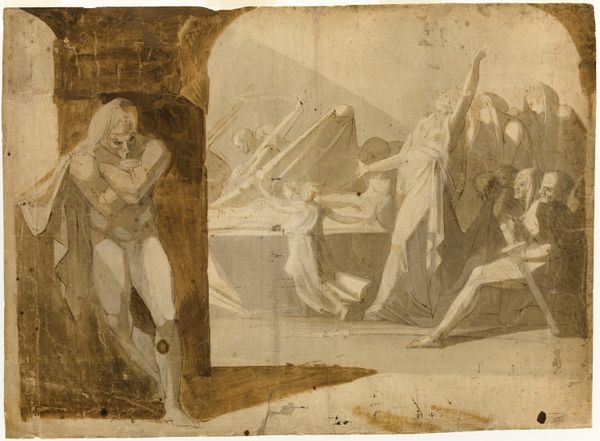 Curator: This is John Singer Sargent's "Study for 'The Winds,'" part of his decorative program for the Boston Museum of Fine Arts. Editor: My first thought is, what a flurry! The composition seems to capture raw energy and movement. What materials did he use to achieve this sense of dynamism? Curator: It’s pigment on canvas, measuring over six feet wide. Sargent was exploring classical allegories, particularly the concept of wind as a powerful force. The figures are, notably, all quite Western and idealized. Editor: It’s interesting how the figures interact with the implied force. What about the impact of labor? Was this a work commissioned for a specific context? Curator: Yes, as a study for a grander museum scheme. Considering Sargent's socio-economic background, we can ask, who gets to create these ‘universal’ symbols and whose stories are left unheard? Editor: A vital perspective. Seeing the art in this context, I think, lets us question the stories about power and representation, and reflect on the legacy that's made.