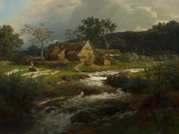 Camille Corot created this oil on canvas painting, Lormes – Un Torrent Avec Une Chevrière Debout, Filant, in nineteenth-century France. This image presents a rustic scene, depicting a goat herder by a stream, set within a dense forest. Corot made this painting during a period of significant social change. France was experiencing the rise of industrialization and urbanization, leading to a growing interest in rural life and nature. Artists like Corot often romanticized the countryside. They presented an idealized vision of pastoral existence as a refuge from the perceived alienation of modern urban life. The Barbizon School, with which Corot was associated, sought to capture the changing effects of light and atmosphere in the landscape, marking a shift from classical landscapes to more realistic and intimate depictions of nature. To truly understand a painting like this, art historians dig into archives, explore the artist's biography, and study the cultural context to reveal the layers of meaning embedded in the work. By examining the artwork within its social and institutional context, we can gain a deeper appreciation of its significance.