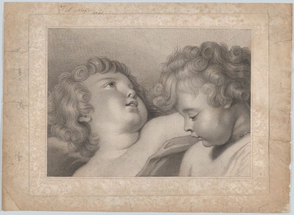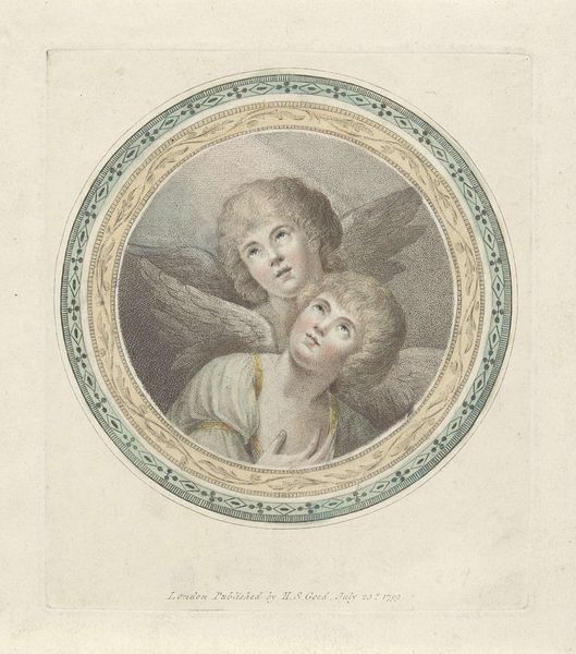 Curator: This delightful watercolor painting from 1748 is titled "Three Cherubs" and comes to us from the hand of Gerard Sanders. I'm immediately drawn to the tender rendering of these figures, the subtle use of the wash to build up their forms. Editor: There’s a striking delicacy to it. The pastel hues and wispy wings suggest innocence and ethereal beauty, yet the almost puffy, solid faces contradict this effect with an underlying, very human character. Curator: Absolutely, the Rococo style lends itself to these contrasts, the painter explores this fine balance of ethereal grace and genre painting to humanize sacred iconography. Sanders appears interested in exploring ideas around perception and status. Editor: It’s fascinating to consider this piece in relation to the societal structures of the time. Was it a commentary on the elite, portraying them almost as cherubic but with a touch of playful satire in their puffy visages? Curator: Certainly a valid reading, bearing in mind Sanders worked with various mediums including chalk and also mastered miniature portraiture in ivory. How does this knowledge reframe your impression regarding labor and cost involved in these types of artwork during 1700s? Editor: Knowing the use of costly ivory gives us better insights into the commissioned status for such works as visual displays of wealth and a sophisticated European culture influenced by elite French courts. This shifts from just aesthetics, to a more material consideration and a display of power, of that time, I believe. Curator: It’s quite remarkable how materials can speak volumes, isn't it? This work transcends pure aesthetics and becomes an indicator of production systems as a materialization of elite class. Editor: Indeed, Sanders work shows to us art always functions as a complex marker shaped by prevailing social norms, commercial factors and artistic visions of each particular time.