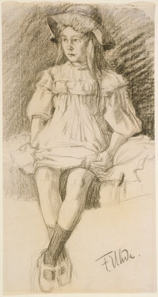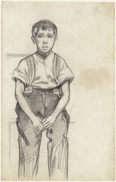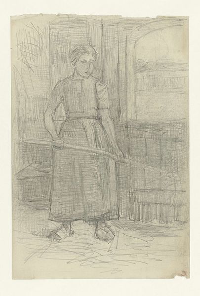 Jozef Israëls made this drawing of a girl sitting and standing, using graphite on paper. This is a rapid study, a working drawing. Graphite is a humble material; think of the grind of pencils, the soft greyscale it produces. The artist used delicate lines to capture a sense of light and shadow on the girl's face and clothing, with a cross-hatched background adding depth to the composition. You can see him testing out the same motif twice on one sheet, a way of figuring out the image through labor. Israëls was interested in capturing the lives of ordinary people, particularly those of the working class. The girl is dressed simply, with a plain dress and clogs, suggesting her humble background. Israëls elevated those backgrounds, depicting them with dignity, even beauty. It makes you wonder about the economic and social conditions that defined the lives of the people he portrayed. By focusing on the lives of ordinary people, Israëls challenged the traditional boundaries of fine art, reminding us that art can be found in the everyday.