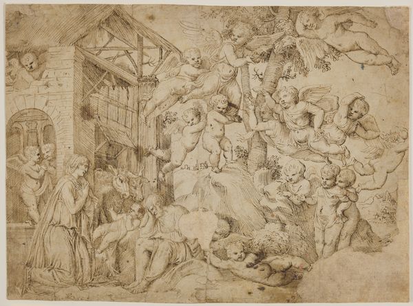 Giulio Benso made this drawing, ‘The Adoration of the Magi’, using pen and brown ink with brown wash over graphite. It's on two sheets of paper, joined. Benso clearly wanted to create a strong sense of depth and atmosphere, and the layered washes of ink would have been essential to achieving that. The controlled application of these washes demanded skill and patience from the artist. Notice how Benso uses the texture of the paper to his advantage. The ink settles into the fibers, creating subtle variations in tone and adding to the drawing’s overall richness. Although this is a religious scene, the artist’s focus is on the act of creation. He invites us to appreciate the time and effort involved in bringing such a vision to life. The drawing is a testament to the enduring power of traditional techniques in the hands of a skilled artist. It shows how, even with humble materials, great artistic feats can be achieved.