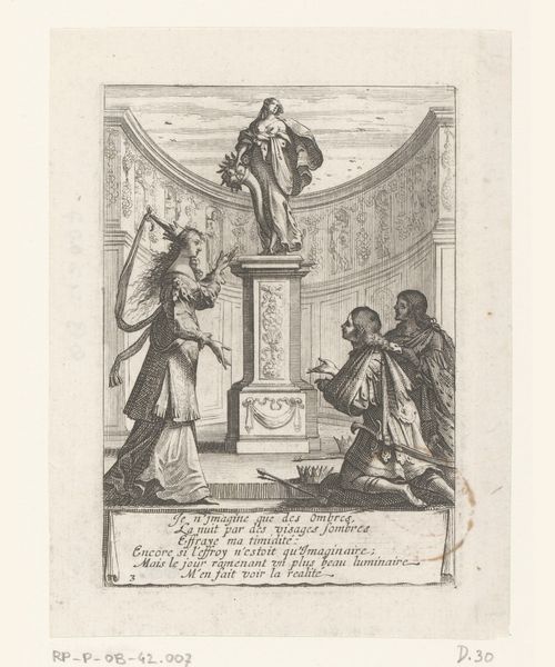 This print, "Wandelend jong paar," or "Walking Young Couple," was made by Gillis van Breen, likely in the early 17th century. The process here is key: it’s an etching, meaning that van Breen painstakingly drew through a waxy ground on a metal plate. Acid then bit into the exposed metal, leaving behind incised lines. These lines are crucial to the image. The figures emerge through a dense accumulation of marks, a veritable thicket of labor. Look at the way van Breen uses short, quick strokes to define the folds of the couple's garments, and longer, more deliberate lines to capture the subtle gradations of light and shadow. The choice of etching, rather than other printmaking methods, speaks to a broader social context. Etching was favored by artists who sought a more direct, expressive approach. There’s a sense of immediacy here, a feeling that we’re witnessing a fleeting moment captured in time. This was a technique that allowed for relatively quick production, in comparison to other methods, and helped to feed a growing market for imagery. By considering the material qualities of this print, and the labor involved in its making, we can move beyond simply admiring its aesthetic beauty, and gain a deeper appreciation for its cultural significance.