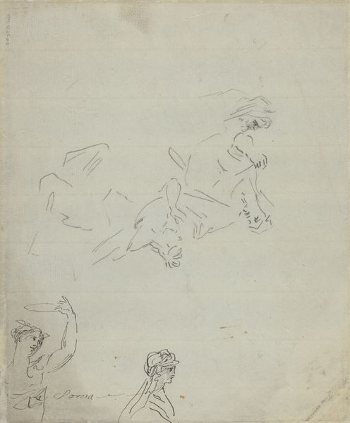 Editor: This is "Various Sketches, Possibly Theatrical" by Henry William Bunbury. It looks like pencil on paper. The sketches seem playful, almost like costume design. What can you tell me about this work? Curator: Look closely at the paper, its size. These are not formal exhibition pieces. Bunbury, in creating these sketches, was engaging in a process tied to the material conditions of theatrical production. Who was his audience, and what was the function of these sketches? Editor: So, you're saying it's less about high art and more about the labor of creating theatre? Curator: Precisely. We see the means of production, not just the final product. That changes how we value them, doesn't it? Editor: It definitely does. I’ll think about process and context next time.
