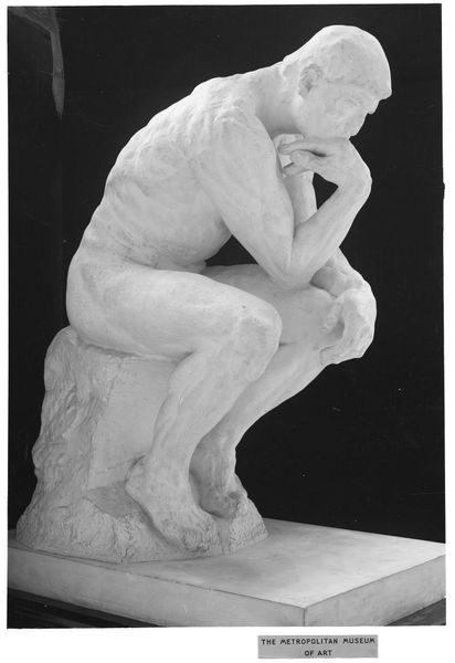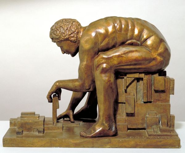 Editor: Here we have Aristide Maillol’s “La Nuit,” created around 1902. It’s a bronze sculpture of a seated, nude woman with her head resting on her arms. I find her posture so evocative of grief or despair. What strikes you most about this piece? Curator: It is interesting how Maillol distills universal emotions through form. Do you notice how the figure’s self-embracing pose acts as a protective shield? Consider the long history of the 'sleeping Ariadne' and reclining female nudes in the Western canon. How does Maillol use and depart from these archetypes? Editor: I see the resemblance to the "sleeping Ariadne" you mentioned! But unlike those serene figures, there's a tension here, a withdrawing inward. The lack of direct engagement with the viewer amplifies the feeling of isolation. Curator: Precisely! The face is hidden, absent, allowing the viewer to project their own emotions onto the figure. Does this absence then create a mirror? Editor: That's a powerful thought! The smooth bronze surface also seems to emphasize the timeless quality of sorrow and its connection to human experience. I wonder, does the title “La Nuit”, The Night, suggest the darkness is internal? Curator: Perhaps it evokes the nocturnal landscapes of the soul, times when one battles private anguish and loss. It reminds us that grief and introspection are as much a part of life as daylight. What new understanding of "La Nuit" are you taking away today? Editor: I will remember that its power lies not just in depicting sadness but in inviting empathy. Thanks, that was truly insightful!