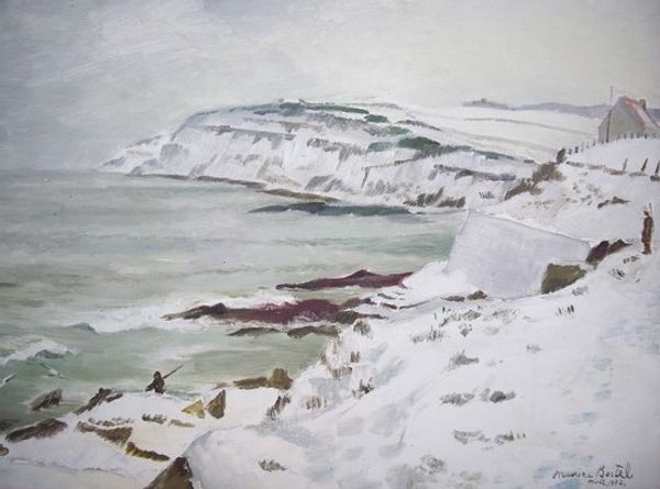 Editor: "The Big Crater," painted in 1917 by William Orpen, rendered with oil paint... The canvas is dominated by a stark, almost lunar landscape. What strikes me most is this odd combination of beauty and devastation, an unsettling marriage of color and destruction. What do you make of it? Curator: Ah, yes, Orpen. It's like stumbling upon an alien planet, isn’t it? He paints what feels like another world—and in a way, it *was*. Imagine being an official war artist in World War I, surrounded by relentless carnage. What does one even *do* with that? He chose, it seems, not to give us the trenches directly but the aftermath, a world reshaped by unimaginable force. Do you feel the ghostly absence? Editor: Absolutely. It’s desolate. A quiet…horror. There’s that beautiful light hitting the top of the ridges. It's so surreal. It’s almost Romantic. Curator: Romantic, yes, in the original sense. Think of Caspar David Friedrich's lonely wanderers dwarfed by nature, except here, nature is war itself, creating these "big craters" --almost wounds on the earth. There’s a terrible irony, painting something so sublime when its origins are so deeply ugly. Do you find yourself strangely drawn to it despite that? Editor: Definitely. Maybe because the beauty softens the blow a bit, inviting contemplation rather than just shock. I'd never really thought of war having its own landscape before. Curator: War has always shaped landscape, visibly and invisibly. This, I think, is Orpen showing us just how profound and disturbing that shaping can be. A beautiful elegy perhaps, carved from the face of destruction. Editor: So, in a way, it's not just about depicting destruction, but how we make sense of it. Food for thought.