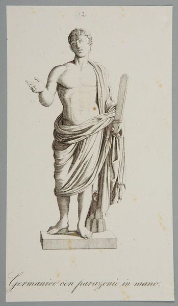 Editor: We’re looking at "Niobe and her Daughter," a print by Giovanni Battista Piranesi. The engraving depicts a sculpture, capturing a mother in distress shielding her child. I'm struck by how theatrical the composition feels, like a scene frozen in time. What do you see in this piece? Curator: The theatricality is key. Piranesi wasn't just documenting a sculpture; he was engaging with the performance of history and power. Notice how he frames the sculpture with inscriptions celebrating noble patronage, essentially inserting the work, and himself, into a network of influence. How does that influence the reception of the work itself? Editor: So it’s not just about the mythological story, but also about how art gets promoted and legitimized through these kinds of endorsements? Curator: Precisely. Piranesi understands the politics of imagery. He uses his prints not only to disseminate knowledge of antiquity but also to elevate his own status as a key interpreter and purveyor of Roman grandeur. Consider how these prints were disseminated - who had access to them and how did they serve as a cultural currency? Editor: It's like he's highlighting the relationship between art, power, and social circles. This makes me rethink how seemingly straightforward historical depictions are always embedded in their own context. Curator: Exactly. The act of creating and circulating such images directly contributed to defining the tastes and values of his elite audience, solidifying cultural hierarchies. So, understanding the 'who' and 'why' behind these works can reveal so much more. Editor: This has definitely opened my eyes to how socio-political dynamics play into something as simple as a print of a sculpture. I never considered the economic incentives or status involved in its creation and the distribution before. Curator: That's the power of looking beyond the aesthetic to understand the art world as a dynamic and political space. Always consider who benefits.