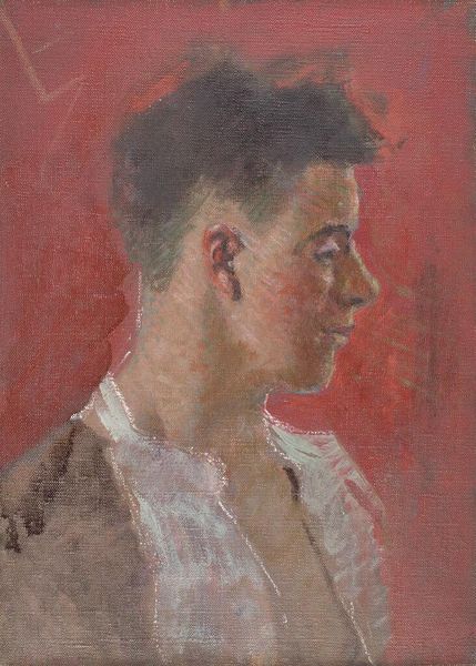 Curator: This is Denman Waldo Ross’s "Portrait of a Young Man in Open White Shirt," currently residing at the Harvard Art Museums. Editor: The painting has this air of quiet introspection, doesn’t it? The way the light catches his profile is really striking. Curator: Ross was deeply involved with color theory, and you can see it at play here. The subtle gradations in the skin tones, the contrast with that almost aggressively white shirt… Editor: It feels very intimate. I wonder who he was. He has a slightly mournful expression, like he’s just remembered something sad. Curator: Portraits like these often served as studies. Perhaps Ross was experimenting with capturing a certain mood, a fleeting moment. Editor: Whatever his intention, it resonates. There’s a raw, almost vulnerable quality about him. Curator: It’s a powerful piece, isn’t it? A window into a specific moment, captured through Ross’s unique lens. Editor: Yes, a reminder that every face holds a story, even when it's just a fragment we're allowed to glimpse.