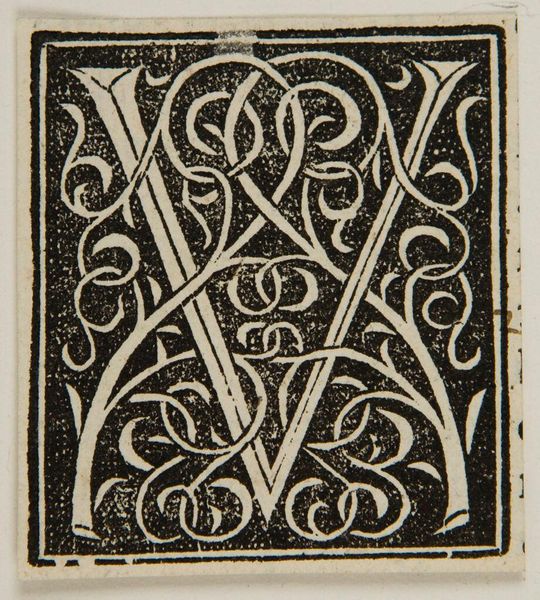 Editor: Here we have "Letter M," a print of unknown date by an anonymous artist. The intricate design is captivating. What do you see in this piece, considering its formal elements? Curator: The composition displays a remarkable balance between the geometric rigidity of the letterform and the organic fluidity of the surrounding ornamentation. Note how the artist employs contrasting textures. The smoothness of the letter opposes the intricacy of the floral and avian motifs. Editor: So the interplay between structure and detail is key? Curator: Precisely. The success lies in the tension between these elements, generating visual interest. I am left wondering about the meaning of the birds. Editor: This focus on form really opens up a new avenue of appreciation. Curator: Indeed. Formal analysis allows us to engage with the work on its own terms.
