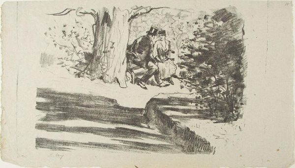 Willi Baumeister made this intriguing print, "Shamash told us to fight against Chumbaba," using a simple palette and direct mark-making. It feels immediate, like a sketch exploring a concept or idea. The textures are fascinating; see how the dark lines create depth and shadow around the lighter shapes? It reminds me of playing with stencils as a kid. I love the way Baumeister doesn't try to hide the process; it’s all right there on the surface. In the lower left, the cross-hatched shading adds an almost tangible weight to the forms, grounding them in the composition. Baumeister's work often explores abstract forms and their relationship to the human figure. Artists like Paul Klee come to mind, who similarly played with simplified shapes and symbolic imagery. It’s like they’re both having a conversation across time about how we see and interpret the world. Ultimately, this print invites us to engage with ambiguity and find our own meaning within its abstract language.