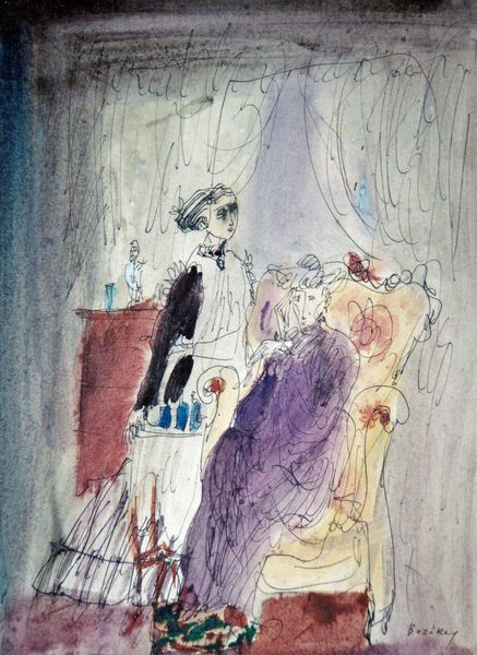Henri de Toulouse-Lautrec made this drawing of The Goulue and Valentin, The Boneless One, using pencil or crayon on paper. It is a loose sketch that captures the essence of the famous cabaret dancers. The artist's choice of materials and techniques underscores the fleeting nature of the Parisian nightlife he depicted. This approach to mark-making isn't about refinement or permanence, but rather about capturing the energy of a scene, of the dancers, and the atmosphere of the Moulin Rouge. The textured paper adds a tactile quality to the image. The sketchy lines and the visible strokes of the artist's hand remind us of the labor and artistic skill involved in creating this drawing. It is a document of a specific time and place, encapsulating the spirit of a society undergoing rapid change. Considering the materials, the mark making, and the social context allows us to understand the drawing not just as a representation, but as a physical manifestation of a moment in time, blurring the lines between fine art, illustration, and social commentary.