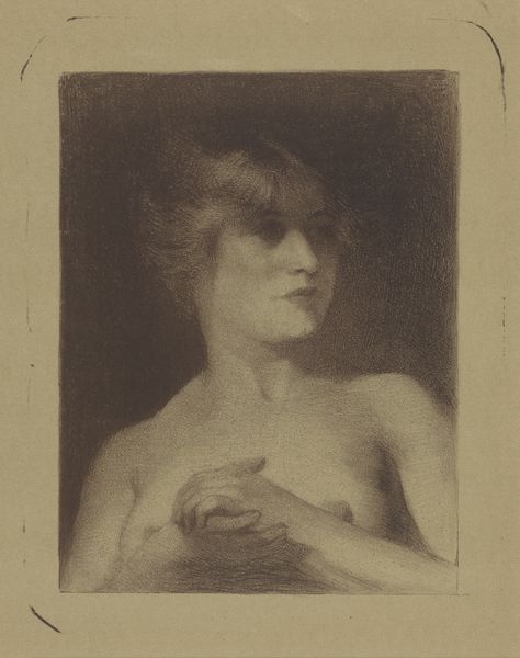 Editor: So here we have "Zittende Vrouw," or "Seated Woman," by Nicolaas van der Waay, sometime between 1865 and 1936. It’s a graphite or pencil drawing, and I'm immediately struck by how vulnerable the sitter appears. It feels like a very private moment. What do you see in this piece? Curator: The averted gaze, the clasped hands... Indeed, there's a carefully constructed sense of intimacy. The draped fabric, while offering a degree of modesty, simultaneously draws attention to the exposed form. Consider the loaded symbolism: what does it evoke when an artist chooses to portray a female figure in this state of undress? Editor: I guess it depends. It feels like she's more self-possessed than sexualized, but I see how it could read either way depending on your own associations. The draped fabric reminds me of classical depictions of goddesses, maybe Venus. Curator: Exactly! The drapery acts as a visual echo, consciously or unconsciously recalling those historical depictions. And the fact it is a drawing adds another dimension to that vulnerability you identified. What's absent is as important as what's present. Van der Waay invites us to complete the narrative. What emotional narratives, linked to art history or psychology, might it conjure? Editor: Maybe it is about contemplation then – like the woman is drawing power from within. Seeing that connection to classical goddesses definitely makes me think differently. Curator: Precisely. And consider the lasting power of the “seated woman” across time – from ancient sculptures to contemporary photography, the symbol and meaning endure through changing artistic styles. What a subtle dialogue across the ages Van der Waay created! Editor: It’s fascinating how much complexity can be communicated with a simple sketch. Thank you for sharing your insights!