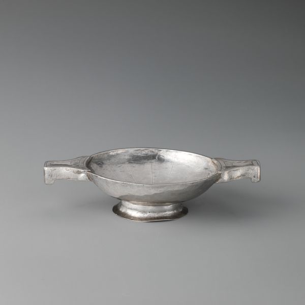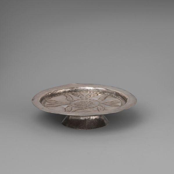 This diminutive patch box, crafted in the early 18th century by William Cowell Sr., presents a study in miniature formalism. Its circular form, rendered in subtly reflective silver, immediately draws the eye. The box's surface is not merely smooth; it's articulated with delicate engravings. These details, though small, introduce complexity and texture that play with light, altering our perception of its shape. The engraved patterns invite closer inspection and decode the values of ornamentation prevalent in its era. This object transcends its practical purpose; it embodies a philosophical dialogue between form and function. The box becomes a canvas where societal values around beauty, status, and personal care converge, making it a compelling artifact. Its visual appeal lies in the delicate balance between simplicity and ornamentation, reflecting a society in dialogue with its own image.