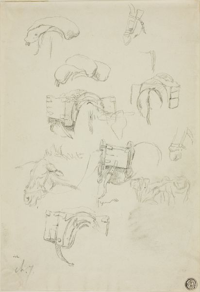 This is a study sheet from Vognserup by Johan Thomas Lundbye. It's made with pen and brown ink, over a preliminary drawing in graphite, on paper. The rapid application of the ink allowed Lundbye to quickly capture the fleeting forms of cows and milkmaids. You can see a range of techniques here, from delicate hatching to bolder outlines. This gives the figures a sense of volume and presence, despite the economy of line. The artist uses the contrasting colors of brown ink and graphite to provide shading. The paper itself also contributes to the artwork's overall appearance, its surface texture subtly influencing the way the ink sits, and the soft grey-blue hue providing a muted backdrop that enhances the warmth of the ink. The drawing has a social context too. By drawing the milkmaids from behind, Lundbye is showing their labor. These were the realities of the Danish landscape in the 1800s. Appreciating the way it was made, and its wider context, helps us to understand it more deeply.