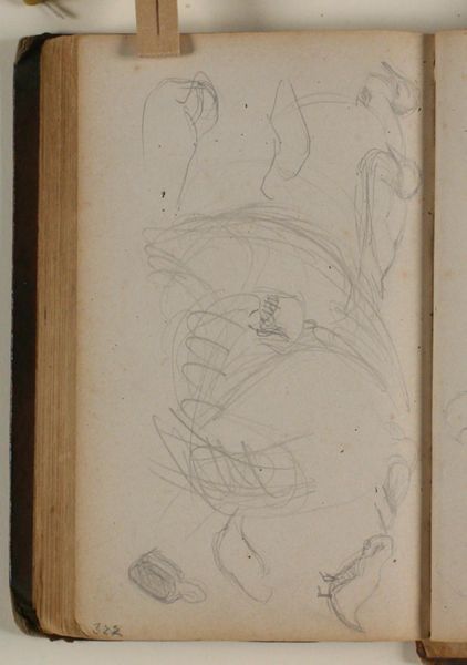 Curator: We’re looking at “Plantestudier,” or "Plant Studies," by Niels Larsen Stevns, created sometime between 1906 and 1910. It's currently housed here at the SMK, Statens Museum for Kunst. The piece is a sketchbook page filled with pencil and colored-pencil drawings of plants. Editor: My immediate impression is of something quite delicate, almost tentative. The light pencil work on aged paper gives it a feeling of ephemeral beauty, like capturing a fleeting moment in nature. Curator: Indeed. Stevns was working within a tradition of naturalism, aiming to depict the natural world as accurately as possible. Sketchbooks like this were common tools for artists to study nature firsthand, recording observations for later studio work. The sketches give us insight into his methodology. Editor: I’m struck by the contrast between the precisely rendered outlines of the blossoms and the more suggestive, fainter impressions of plant forms beneath. The composition uses the negative space quite cleverly, allowing the eye to complete the shapes. What do you think that choice brings to the piece? Curator: I would say that these studies, these glimpses, are crucial for understanding Stevns' creative process, in this period, when art began moving out of academic style. These are not finished works for public consumption but are rather studies used for learning the basic tenets of Naturalism to push art forward. It suggests a democratizing approach. Editor: So, it's less about polished presentation and more about functional record-keeping, or a form of private note taking? This raw and unfinished quality lends the drawing an almost accidental aesthetic appeal. The page feels very open. Curator: Precisely. And thinking about where this piece now lives, how is it recontextualized in this gallery space, as opposed to simply existing as a page in an artist’s personal sketchbook? Editor: Interesting how moving this sketch to a museum context has transformed its reception. It compels viewers to focus less on perfection and more on the intimate, unfolding story of observation, an ephemeral study brought into the light. Curator: Absolutely, something initially private and utilitarian becomes available to public view and scholarship. Editor: Looking at this I feel both nature's beauty and Stevns’ artistic discipline keenly observed. Curator: And for me, considering Stevns' legacy alongside evolving attitudes to nature at the turn of the 20th century brings historical depth and allows us to appreciate art in context.