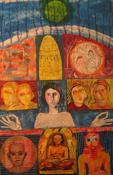 Here we see Vudon Baklytsky's ‘Mysterious Woman,' a mosaic-like portrayal of a woman’s face against an intricate floral backdrop. The golden tesserae that speckle her dark hair lead the eye to the floral pattern, reminiscent of ancient tapestries, suggesting themes of beauty and nature. This halo-like hair decoration echoes the divine halos seen in Byzantine art. This carries associations with holiness, authority, and enlightenment. The halo appears in various forms, from a simple disk to a radiant aura, signifying a sacred quality. Over time, it has evolved from religious contexts to secular uses, symbolizing importance or idealized status. Psychologically, such symbolic use taps into our collective memory, a subconscious recognition of archetypal figures and concepts. The artist uses this visual vocabulary to create a powerful emotional connection, evoking feelings of reverence, mystery, and perhaps even nostalgia. It reminds us that symbols do not die; they transform, resurface, and continue to influence our perceptions across generations.