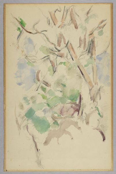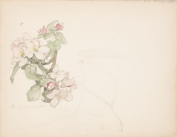 Paul Cézanne created this delicate watercolor, "Flowers," with translucent washes of pigment on paper. The composition is dominated by a cluster of leaves and a single red flower, centrally placed. The surrounding foliage is rendered with subtle gradations of green and blue, creating a harmonious balance that evokes a sense of serene contemplation. Cézanne's approach here is intriguing, for he destabilizes the traditional still life. The incompleteness of the surrounding sketches suggests a work in progress, or perhaps a conscious decision to leave certain areas undefined. This technique emphasizes the materiality of the medium, drawing attention to the interplay between the white of the paper and the applied pigments. The visible brushstrokes and unfinished sections invite the viewer to consider the process of creation itself, rather than merely the final representation. Cézanne challenges the fixed idea of what a painting should be, making "Flowers" an ongoing exploration of perception, representation, and the very essence of painting.