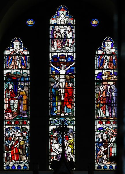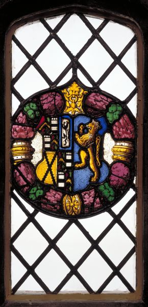 This stained-glass window features a heraldic cartouche, replete with emblems of lineage, power, and identity, all rendered in vibrant colors. The shield at its center—divided into distinct fields, each bearing unique symbols—speaks to a complex history, a blend of inheritances and alliances. Observe the lion head, a motif that echoes through time, from ancient Greece where it adorned temples, instilling a sense of awe and authority, to medieval Europe where it became a standard in heraldry, signifying courage and nobility. Consider how such symbols evolve. The lion, initially a representation of divine power, gradually morphed into an emblem of earthly dominion, a transformation mirroring the shifting tides of cultural values. This emblem connects to our collective memory, tapping into primal associations of strength and protection. It's a visual echo of the past, still resonating with an emotional charge. The heraldic language, though seemingly rigid, is in constant flux. Symbols resurface, adapt, and acquire new layers of meaning, reminding us that history is not a linear progression but rather a cyclical dance of recurring motifs.