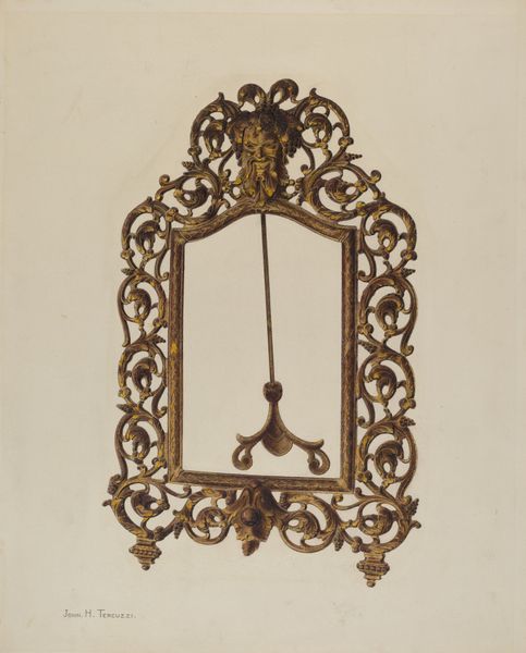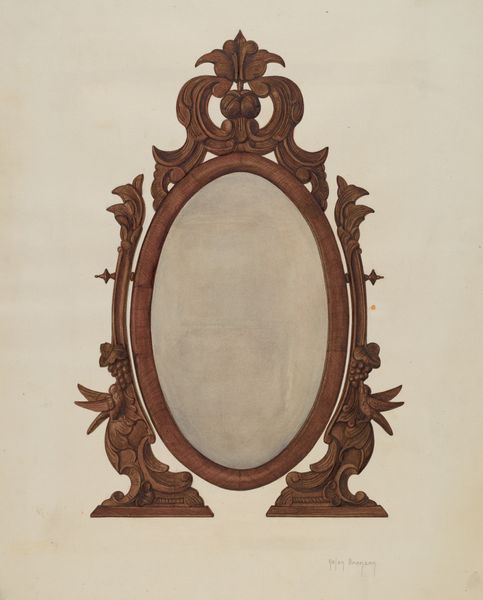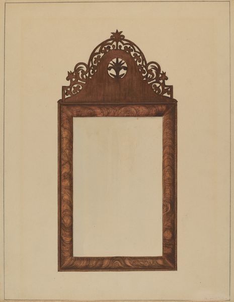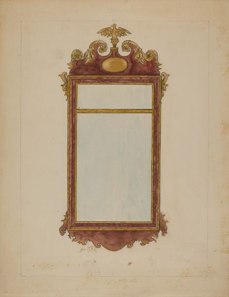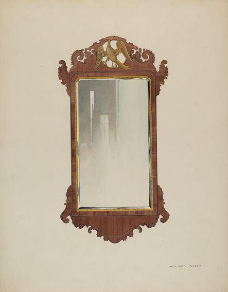 Arthur Johnson made this image of a mirror, but the date is unknown, and who knows with what! Look at the way the red paint is applied – it's like he's caressing the surface, building up layers, but also leaving some areas a little bare, like you can see the drawing underneath. The color is gorgeous too, a kind of brick red that feels both earthy and regal. I am curious about the gold bird at the very top. How it balances the weight of the heavy base, giving the whole thing a sense of lift. The mirror itself is empty, waiting for someone or something to fill it. I wonder what Johnson was thinking when he painted this? Was he thinking about who would look into the mirror, or about the mirror itself as an object? This reminds me of some of the work of the Shakers, who also found beauty in simplicity and functionality. Like all good art, it invites us to slow down, to look closely, and to ask questions.