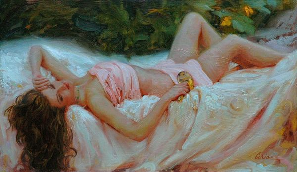 Mark Arian's painting features a woman holding lilies, set against the backdrop of a faint Buddha image. The lilies, symbols of purity and resurrection, connect us to ancient concepts of rebirth and divine grace. We can trace this motif's lineage back to antiquity, where similar flowers were offered to goddesses, embodying hope and renewal. The Buddha in the background introduces a layer of spiritual contemplation, an echo of Eastern philosophy. Consider how the woman's serene expression evokes a sense of peace, drawing on our collective memory of sacred art. This combination of symbols creates a tapestry of meaning, where Eastern and Western spiritual traditions merge. The psychological effect is profound, engaging us with primal symbols of life, death, and transcendence. The evolution of these symbols illustrates our enduring quest for meaning. It is a testament to their ability to adapt, resurface, and resonate anew across time, echoing through the corridors of history and manifesting in new forms.