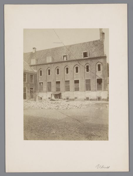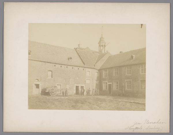 This photograph of the courtyard of Geudje Castle was made by an anonymous photographer for the Dutch Office of Monuments. The image offers a look into the cultural values and institutional practices of its time. The photograph, with its focus on a historical site, reflects the growing interest in preserving national heritage, and the rise of institutions dedicated to conservation. Its muted tones and composition, emphasize a sense of the past. This aesthetic choice aligns with the Office of Monument's mission of documenting and safeguarding historical landmarks. The image invites questions about how cultural institutions shape our understanding and relationship to the past. To understand this photograph fully, one might look into the archives of the Office of Monuments, to discover more about their practices and priorities. Exploring local histories of the region could reveal the significance of Geudje Castle to the community. Such investigations can provide richer insight into the photograph's meaning as a cultural artifact.