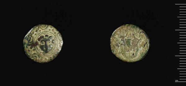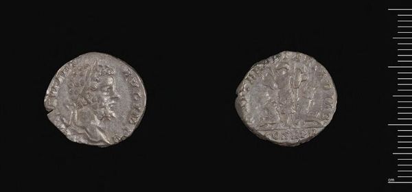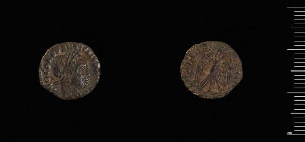 Curator: Immediately, I perceive an object burdened by time—the textures almost screaming its antiquity. Editor: Indeed. What we're looking at is a Follis of Licinius I, struck in Thessalonica. It's a small coin, 2.82 grams in weight, now residing at the Harvard Art Museums. Curator: Note the portrait: the stark profile on one face and the symbolism on the other, each element existing in a tense, almost aggressive, visual balance. Editor: It's a fascinating glimpse into the economy and political messaging of the Roman Empire. Coins like these were tools for disseminating imperial power and ideology. Curator: Precisely! The composition, even in its worn state, retains its semiotic power, resonating across millennia. Editor: Well, it's certainly a physical manifestation of history's grand sweep. A modest, yet compelling artifact.