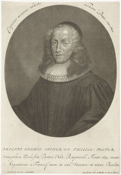 Pieter Schenk created this engraving, "Portret van Kaspar Neumann," capturing the likeness of Kaspar Neumann, a prominent theologian and scholar. The portrait reflects the social and intellectual circles of the late 17th and early 18th centuries. This image offers a glimpse into the representation of intellectual identity during this time. Neumann, with his formal attire, embodies the era's emphasis on status and scholarly achievement. The portrait's traditional style maintains the established norms for portraying figures of importance, yet it also hints at the individual's character through subtle details in his expression. Consider the emotional nuances conveyed in Neumann's gaze and posture. Does it project authority, contemplation, or perhaps a hint of the personal struggles of navigating religious and intellectual life during a time of significant change? This engraving invites us to reflect on the relationship between public image and private identity, and how societal expectations shape individual expression.