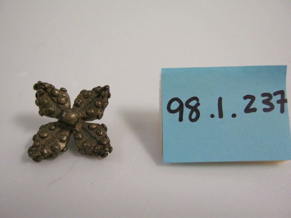 Curator: This small but intriguing piece is an Akan goldweight from the 19th or 20th century, specifically representing a locust. It's part of the collection at the Minneapolis Institute of Art and made of brass. Editor: My initial reaction is, “Wow, something so functional can be so beautifully rendered!” It’s rough-hewn, almost like a fossil. Curator: Indeed. These goldweights, though functional for measuring gold dust, also served as a form of visual communication in Akan society. Their production and use were deeply embedded in the social and economic structures of the time. Editor: How so? Who was producing them, and how were they used in broader market practices? Curator: Usually made by local artisans working within Akan communities, the production involved the lost-wax casting method. Their forms, like this locust, conveyed proverbs, social commentaries, and moral lessons, essential elements in the economic and cultural life of the Akan people. Editor: So the choice of a locust is deliberate. Insects often appear as metaphors in folklore...was this locust referencing greed or some other societal ill, maybe crop devastation and famine fears? Curator: Possibly. The locust could represent destructive forces but also perseverance—locusts appear in great numbers, overcoming obstacles. Interpretation depends on the context and the user. Their existence underscores a fascinating link between material culture and social governance. Remember, imagery held incredible power. Editor: Looking at it in a museum setting today...the display really changes the object's life. Here, it exists solely for contemplation, severed from its original labor and transactional setting. That reframing is significant. Curator: Absolutely, the museum environment alters its function, shifting from a unit of economic measure to an aesthetic object. The display highlights its artistry and historical significance but perhaps obscures its original intent and circulation. Editor: Well, thinking about the artist’s labor, and how this small form carries so much significance still…It certainly prompts you to think about production, value, and meaning. Curator: I agree. I think this piece prompts valuable questions about trade, artistry, and the shaping influence of objects in our history.