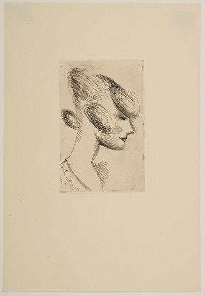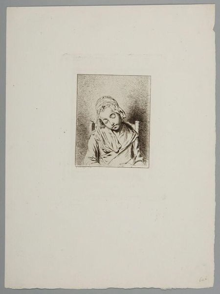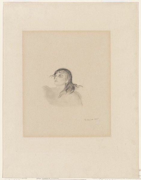 Curator: This haunting piece is Odilon Redon’s "Lunacy," currently residing here at the Harvard Art Museums. Editor: My first thought? Melancholy. The woman’s gaze, that sharp geometric shadow... it’s like a memory pressing in. Curator: The geometric shape, that triangle, is a symbol of stability, yet here it seems to confine and darken. Think of the cultural weight of triangles and their use in occult symbology. Editor: Exactly. It almost feels like a thought bubble gone wrong, trapping her in her own mind. Redon was exploring the edges of consciousness, wasn't he? Curator: Precisely. He was fascinated by dreams and the subconscious, exploring the symbolic weight of inner experience, madness, and insight. Editor: I like that, insight. It makes me see her expression as more than just sad. More like she knows something we don’t. Curator: Perhaps Redon is suggesting that lunacy isn't just madness, but a different way of perceiving. It makes you question what we consider normal. Editor: Definitely gives you pause, doesn't it? A little reminder to look deeper than the surface.