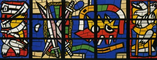 Fernand Léger created the Audincourt window, now at the Musée National Fernand Léger, using his signature bold, colourful style. The window features abstract shapes reminiscent of musical instruments, notably what appears to be a stylized trumpet. Instruments in art have long been symbols of harmony and celebration, harking back to ancient Greek depictions of Apollo with his lyre. Léger's use of fragmented forms reminds us of Cubism, yet he infuses it with a modern sensibility, suggesting the dynamism of the machine age. The grid format, while echoing traditional stained glass, also reflects a modern, industrial aesthetic. This juxtaposition of tradition and modernity creates a powerful tension, mirroring the societal shifts of his time. The bright colours and geometric shapes evoke a sense of joy, a subconscious yearning for order amidst chaos, which is carried and transformed through generations of art.