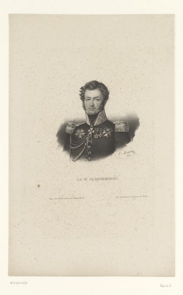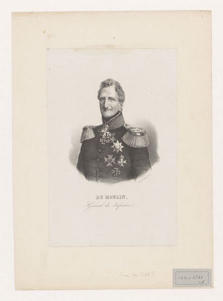 Curator: A stern but elegant gentleman rendered with a soft touch. Editor: That would be the “Portret van Johannes van den Bosch,” a print of a pencil drawing completed by Johan Hendrik Hoffmeister sometime between 1851 and 1883. The precise dating remains, shall we say, in debate. Curator: There is a directness in his gaze, a quality of unwavering leadership. The choice to portray him in full military regalia is striking. Do you read this as an idealized representation, or something more grounded? Editor: I think it reflects how he saw himself, and how he wanted to be seen by posterity. Van den Bosch was a key figure in Dutch colonial administration, so that uniform carries a heavy symbolic weight of power and authority. Neoclassical art always had close ties with state authority in Europe. Curator: Absolutely. The precision in the rendering of his awards – each star and ribbon carries layers of significance about service, honor, and allegiance. These symbols acted as visual cues, immediately communicating the status and virtues expected of leaders in that period. The visual language certainly aligns with that of a man who made a significant impact. Editor: He’s presented as a figurehead in this era of intense colonial activity, isn't he? I mean, art often becomes an instrument, solidifying the images of powerful figures like him for generations to come. What do you make of his serious expression in a society keen to produce serious role models? Curator: Yes, it feels purposeful, a communication that emphasizes dedication to duty. We are witnessing how portraiture functions as a kind of cultural script. It teaches us who to admire and what values to emulate. A carefully built edifice of symbolism all of its own! Editor: And that’s part of the continuing resonance and tension within it. Considering the era, seeing how images of men like Van den Bosch circulate becomes critical to any dialogue concerning representation. Curator: An astute observation. Understanding how symbols operate and the roles they perpetuate is always something that needs further and constant consideration. Editor: Indeed. Food for thought, as always, with the stories of images rippling into our world.