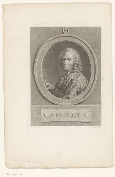 Curator: Here we have "Portret van Herman Boerhaave," dating from sometime between 1816 and 1860. It appears to be a print, created using engraving and graphite on paper. Editor: The first thing that strikes me is the somberness of the figure, and the incredible detail in the rendering of his hair. Curator: The portrait is of Herman Boerhaave, a prominent Dutch physician, botanist, and chemist. He was a celebrated figure, particularly known for his dedication to teaching and clinical practice. Editor: Knowing that contextualizes the image for me. The subject's severe gaze perhaps reflects the weight of medical knowledge or the gravitas expected of scholars during that period. His clothes don't feel decorative, but plain in a way that speaks to purpose, function. Curator: Absolutely. Boerhaave was a significant influence on medical education, advocating for hands-on experience and meticulous observation. His students came from all over Europe. The neoclassical style reflected here emphasizes reason and order, mirroring the scientific approach he championed. Editor: It's interesting how the print medium itself reinforces that sense of accessible knowledge. Prints allowed for wider distribution of imagery and ideas, reflecting the Enlightenment emphasis on spreading knowledge among a broader audience. Curator: Exactly, and Boerhaave's impact extended far beyond the medical field, shaping broader intellectual currents of the time. This portrait immortalizes his legacy, circulating his image alongside his ideas. Editor: Though it's a static image, I imagine him constantly learning, thinking. You almost forget he's confined within this little engraved boundary. Thank you, this insight has brought new depth to my experience. Curator: It's been a pleasure exploring this work with you, uncovering how it captures and disseminates the influence of a remarkable individual.