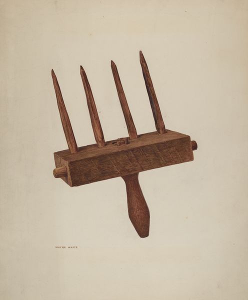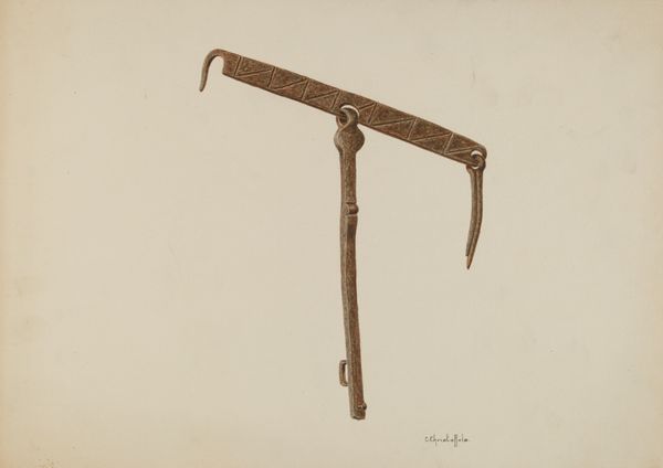 Geoffrey Holt made this drawing of a hasp, with what looks like watercolor. It’s like he’s feeling around for the form, using the watery paint to get the delicacy of this metal object. Holt’s approach to mark-making is about the process. You can see the texture of the paper underneath, that’s because the paint is so thin. It’s a limited palette, just browns and grays, but there’s something so beautiful about the way he captures the essence of this object, this humble piece of hardware. Look at the small details, like the way he suggests the texture of the metal with little strokes of paint. It is so delicate, and quiet. Holt invites you to slow down and really see this object. And in doing so, he reveals its beauty. It reminds me a little bit of Giorgio Morandi’s still lifes.