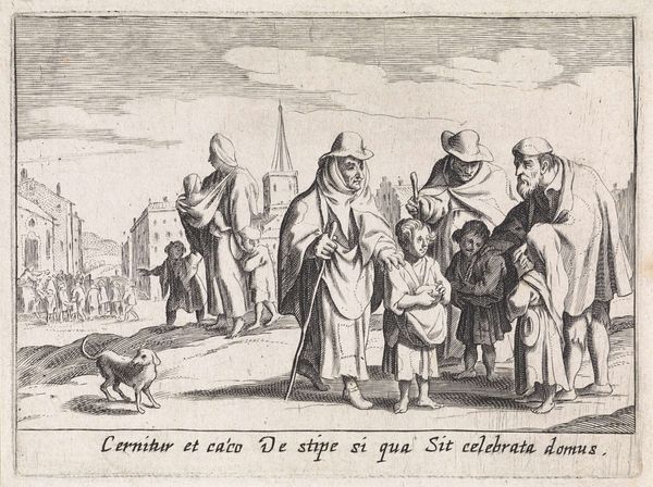 Editor: This print, "Ouderen en kinderen" (Old People and Children), was made by Pieter Hendricksz. Schut sometime between 1628 and 1650. It’s currently at the Rijksmuseum. The lines are so delicate, but it creates such a vivid scene. I'm curious, how do you interpret this work, especially considering its context? Curator: This piece offers a glimpse into the social dynamics of the Dutch Golden Age. Notice how the artist portrays the relationship between generations and societal strata. Consider the implications of representing elders and children together. What does this juxtaposition suggest about community, vulnerability, or the cyclical nature of life and labour? Editor: I guess it shows a kind of reliance or interdependence between different ages... Were children expected to support their elders? Curator: Exactly. It’s also worth thinking about how class might play a role here. The clothes that figures wear may provide details about status or identity within that society, revealing power dynamics. Editor: It’s easy to look at historical pieces like this without thinking about inequality... How might that awareness shift our view? Curator: Paying attention to these dynamics encourages critical engagement with the past. Who is represented? Who is missing? What does that signify about the societal structures? This print can act as a window into understanding both then and now by interrogating representation and visibility. Editor: That gives me so much to think about when looking at art from this period. Curator: It also reveals much about our present, particularly when examining historical artworks. Engaging with the past can illuminate pressing issues in modern society by emphasizing concerns with class and equality.