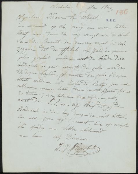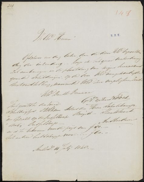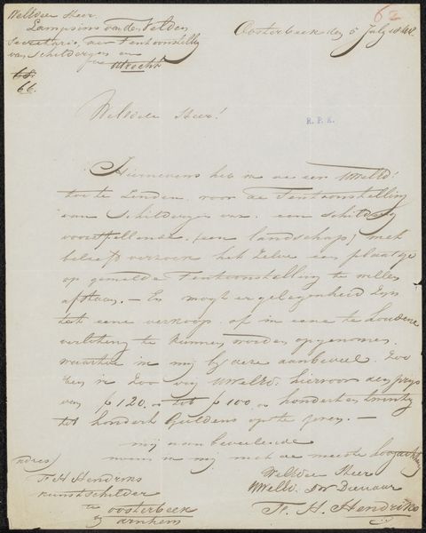 This letter to Jan Jacob Lampsins van den Velden was written in 1866 by Willem van der Worp, on a simple piece of paper with iron gall ink. The letter exemplifies the basic tools of bureaucracy, but also an older tradition of manuscript culture. Consider the labor involved: from the manufacture of paper, to the mixing of the ink, to the practiced hand of the writer. Each stroke is deliberate, communicating not only information, but also the writer's personality and social standing. The letter is also important as a document within a system. It represents an exchange within a network of power. Someone had to deliver the message, and someone else to read and act upon it. We may think of the art world as distinct from such everyday processes, but this piece of paper reminds us that all creative expression is enmeshed in social and economic realities.