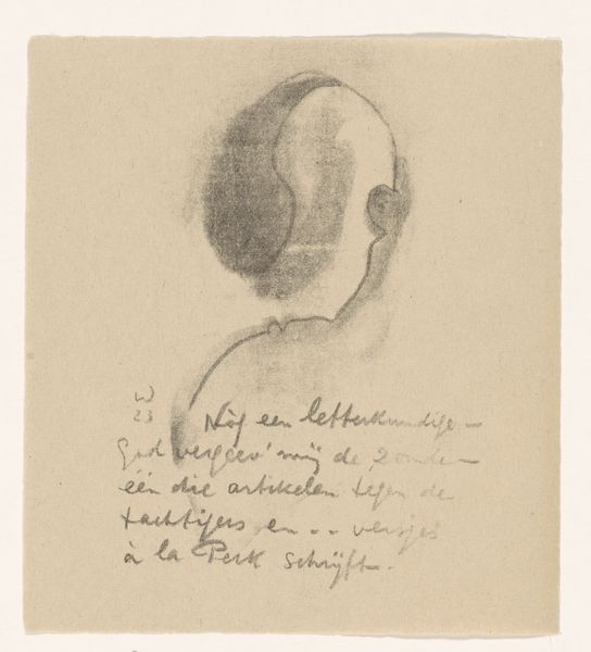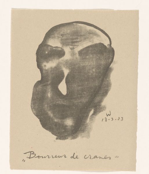 Editor: "Zelfs de duivel is vervelend geworden!" or, "Even the Devil is Bored!" That's the name of this intriguing 1923 pencil drawing by Erich Wichmann. It's definitely striking, evoking a heavy mood, almost like staring into the abyss, wouldn’t you agree? What strikes you most about this piece? Curator: Oh, "the abyss staring back," I love that! It has a rather introspective mood, doesn't it? It whispers to me of existential fatigue – even the Devil, traditionally a figure of vibrant chaos, seems utterly drained. But I feel like I'm missing something here: what about its specific technique speaks to you? Editor: The texture! The varied strokes create a sense of unease and imperfection. And the way Wichmann captures the face itself. Is this mask-like, an expressive grimace? Curator: A grimace indeed. You touched on its visual imperfections! Given Wichmann’s involvement in Expressionism, one could wonder if he portrays the fractured state of mind common in postwar Europe through it...almost like the boredom itself is a monstrous burden. I keep circling back to that title. A rather funny one. Editor: It's kind of sad. "Even the Devil is Bored!" conjures this world-weariness. Curator: Absolutely. It challenges this idea that evil is inherently exciting. It might reflect personal feelings by Wichmann. Maybe, boredom, indifference— these are the greatest evils. Perhaps this devil wants to become good if only there would be something worthwhile. Editor: The way we find surprising emotion in unexpected places - even in the devil. Thanks for helping me think about this in a completely new way. Curator: My pleasure! We see the picture with fresh eyes every time we revisit it, like the artist in front of their canvas.