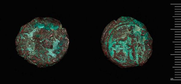 Editor: This is a coin from the Chalkidian League, Olynthos, currently residing at the Harvard Art Museums. The patina is striking. What elements stand out to you in its visual composition? Curator: Observe the subtle relief. Despite the corrosion, the formal structure reveals a deliberate attempt at symmetry and balance. The circular format inherently implies unity, does it not? Editor: It does. And the textured surface, a result of age, almost obscures the original design. Curator: Precisely. The degradation, ironically, adds another layer of visual complexity, inviting consideration of time's impact on form. This tension between intention and decay is central to its appeal. Editor: I never thought about it that way before. Thanks for your insight. Curator: It’s been my pleasure.