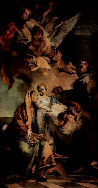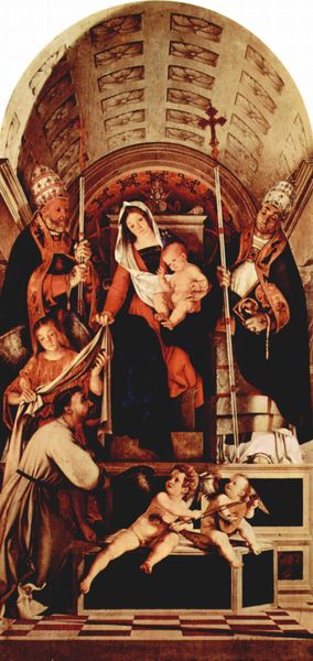 Lorenzo Lotto created 'The Nativity' in the 16th century using oil paint on wood, common materials for the time, yet employed here to create a deeply human scene. Lotto's technique gives this small panel an affecting intimacy. The figures emerge from a dark background with a humble, earthy palette, highlighting the everyday nature of the scene. Mary attends to Jesus in a simple basin, domestic objects scattered around them. Joseph stands at the edge of the scene, carrying what seems to be a bundle of cloth. Oil paint afforded Lotto the flexibility to build up layers of subtle tones, creating a sense of depth and texture that brings the scene to life. The careful rendering of fabric, skin, and wooden textures emphasizes the materiality of this holy event. By focusing on these tangible aspects, Lotto invites viewers to connect with the Nativity on a human level, blurring the lines between the sacred and the everyday.
