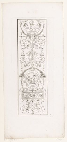 Editor: Here we have a sketch titled "Vuurbok," by Firma Feuchère, dating from around 1830 to 1850. It’s a pencil drawing on toned paper and feels like a preliminary study for a decorative object. What strikes you about it? Curator: Well, immediately, the Neoclassical style jumps out. We see it manifesting not just in the ornamental details, but also in the very function of the object – a sort of idealized, classicized hearth. But beyond aesthetics, what was the role of decorative arts during this period, particularly in the rising bourgeois society? Editor: So, this isn’t just a pretty drawing; it’s reflecting a shift in societal values? Curator: Exactly. The burgeoning middle class sought ways to emulate the aristocracy, and decorative arts offered one avenue. "Vuurbok," if realized, would have been a powerful statement of status, a claim to culture and refinement. But this drawing, as a sketch, it shows something else, the commerce of artistic ideas and the division of labour. Do you notice the detail and the implied manufacturing? Editor: Yes, it does look quite intricate, almost like a design for mass production. But how would the politics of imagery tie in here? Curator: The choice of imagery, the cherubic figures, the geometric flourishes – these weren’t arbitrary. They evoked specific ideals about beauty, morality, and order. This drawing hints at how those values were being disseminated and consumed. Perhaps what’s more telling is this sketchbook art represents something deeply personal but intended for public, even commercial use. Editor: That’s fascinating. I had only seen it as a design element, but now I can appreciate its cultural implications too. Thanks for that deeper context! Curator: And I was so concerned with its function, that I was ignoring the artistic talent and taste inherent in it as a drawing. Very interesting indeed!