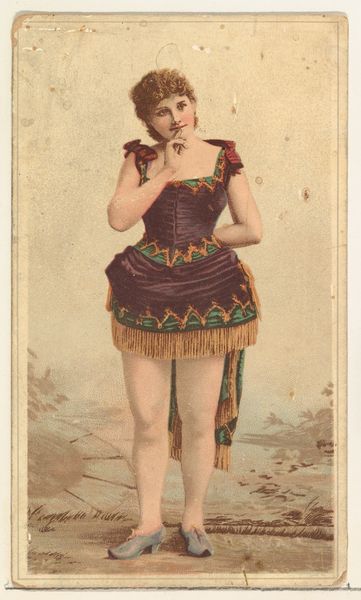 This cigarette card from the series "Sports Girls" was made by the American Cigarette Company to promote Gloria Cigarettes. These small cards, distributed with cigarette packs, reflect the late 19th century’s obsession with both athleticism and idealized femininity. The woman depicted here is adorned in a costume that seems to borrow from burlesque, her garb a theatrical mix of athleticism and allure. Cards like this were part of a larger cultural phenomenon where women's bodies were commodified, both celebrated and scrutinized within the constraints of Victorian morality. While these images might appear to celebrate women's participation in sports, they often reinforced traditional gender roles by emphasizing beauty and display over athletic achievement. The peacock feather she holds adds an air of exoticism, further objectifying her. The card embodies the tensions of its time, showcasing how emerging ideas about women in sports were mediated through the lens of commercialism and male gaze.