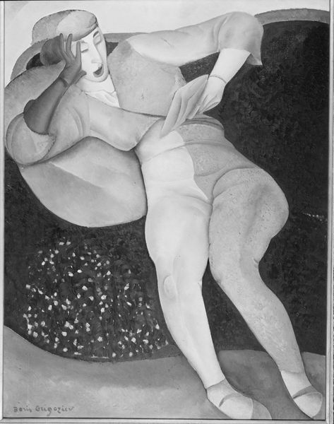 This scroll, ‘Young Actor in Male Role’, was made by Kaigetsudō sometime in the 18th century, using ink and color on paper. While the flat planes of color may look simple, the piece involved a complex layering of mineral pigments and inks. This approach builds on a long history of painting in Japan, but here it’s put to the service of capturing a fleeting moment in the demimonde of theater. The artist's expert touch is visible in the careful rendering of the actor's garments. The floral patterns on the kimono, for example, are depicted with precision and delicacy. These patterns are more than mere decoration; they provide insight into the actor’s character and the role he is portraying. Ultimately, it is the tension between the graphic flatness of the image and the subtle variations in tone and color that give this painting its lasting appeal. The artist's mastery of materials and techniques, combined with his insight into the world of the Kabuki theater, resulted in a powerful work of art.