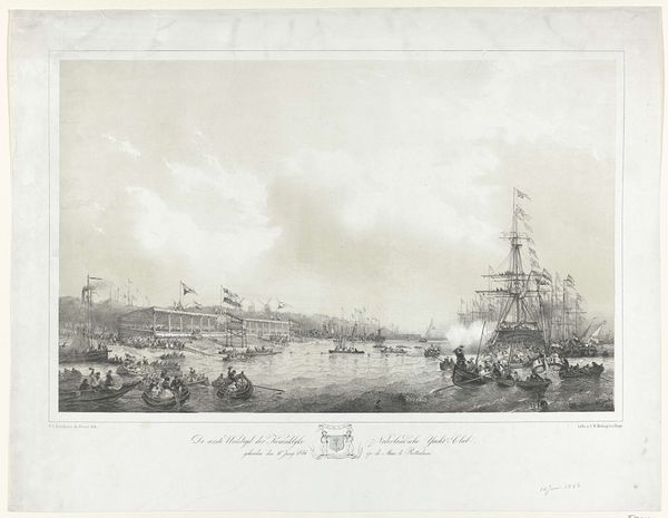 Willem Hendrik Hoogkamer made this print, *Feestelijk bezoek te Nijmegen*, in 1831 using etching and possibly engraving. These printing processes have a fascinating history, closely tied to the rise of mass media. The image is meticulously made with the use of metal plates and acid. The artist would have painstakingly cut lines into the metal, areas that would hold ink and transfer the image onto paper. The result is a multiplication of the same image, transforming the meaning and use of the work. These techniques allowed images to circulate widely, serving purposes such as documentation, promotion, and political commentary. Consider the work involved in its production, the labor of Hoogkamer, the etcher, the printer, and distributors. The labor of these skilled workers is embedded in the print's very existence. By focusing on its materiality and mode of production, we gain insight into the social and economic context in which it was made.