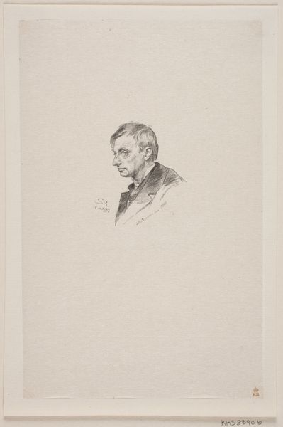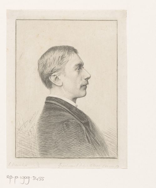 Curator: Before us hangs a delicate pencil and graphite drawing titled "Portret van Camille van Camp," created around 1870 by Auguste Danse. It currently resides here at the Rijksmuseum. Editor: There’s an air of quiet dignity about him, a reserved nature. The starkness of the graphite emphasizes a feeling of almost austere composure. I find it incredibly compelling, yet there’s a palpable distance. Curator: The profile pose immediately brings to mind classical portraiture, a nod to enduring power structures. Consider the symbolic weight of profile portraits through history, particularly those of nobility and important figures. The pencil medium lends an intimacy—a feeling of direct observation, a gaze upon Camille that seeks a glimpse into the soul. Editor: Absolutely. This wasn’t just a snapshot, it was carefully composed within its sociopolitical milieu. As an artwork of the 1870s, we need to recognize the implicit social structures, like class. Portraits functioned in this period often to reassert social status. The question I have is to ask if this profile intentionally alludes to power or critiques it through subtle contrast. Curator: That tension is essential. Auguste Danse lived and worked within the confines of those very social codes, imbuing meaning through subtle departures from convention, challenging established perceptions, a faint smile rather than an imposing stare. These portraits provided some agency to individuals of emerging wealth who desired visual permanence and lasting legacies. Editor: Thinking about the symbols and the impact that art, such as portraiture, had within its original culture definitely has some echoes now. By the same token, this subtle subversion suggests an emerging possibility of social disruption at the cusp of modernity, right? Curator: That's a perceptive way to interpret it! Looking beyond surface-level symbolism allows a profound interaction with not just art history but our present socio-political setting, urging thoughtful and pertinent discourses regarding legacy and power. Editor: It’s been fascinating delving into the historical currents present in what first struck me as merely a quiet portrait. Curator: Indeed! Sometimes, it is precisely in quiet restraint that we uncover the loudest narratives and discover links with ourselves.