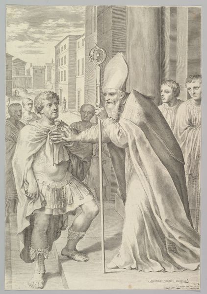 Editor: This engraving from 1754, called "Confirmation, from 'The Seven Sacraments'", by Johann Anton Riedel, has a very formal feeling. It captures what appears to be a confirmation ceremony, full of serious expressions. What's your read on the significance of depicting religious rituals like this in art? Curator: Well, images like this served a powerful public role. In the 18th century, art wasn't just decoration; it reinforced social hierarchies and religious doctrine. Prints, particularly, democratized imagery. These sacraments, cornerstones of Catholic life, were presented in a way meant to edify and instruct. Note the careful arrangement—who do you think benefits from it? Editor: The Church, I guess. By portraying this solemn event, it reminds everyone of its authority and the importance of adhering to religious customs. Is it always straightforward? Were there more layered implications? Curator: Rarely is it ever straightforward. Beyond religious messaging, such images could function as social records, capturing evolving attitudes towards children and religious education. Think about the patronage – who commissioned and disseminated such prints, and how might their interests shaped the final product? Editor: So, looking closer isn't just about religious devotion; it's also about power, society, and maybe even early forms of mass media. Curator: Exactly. Consider how shifts in patronage – from church to wealthy individuals, for example – influence artistic styles and thematic choices, ultimately affecting art’s relationship to the public. Editor: This piece definitely gave me a new angle on how to read artworks beyond their surface. It is so much more than an innocent religious image. Curator: Indeed. Art like this becomes a mirror reflecting not just faith but the very structure of society itself.