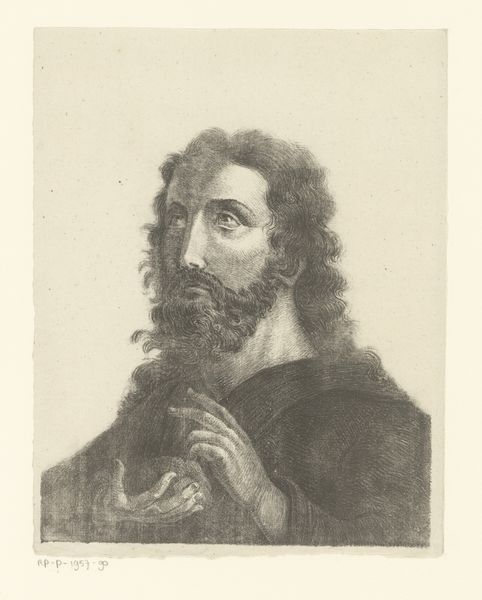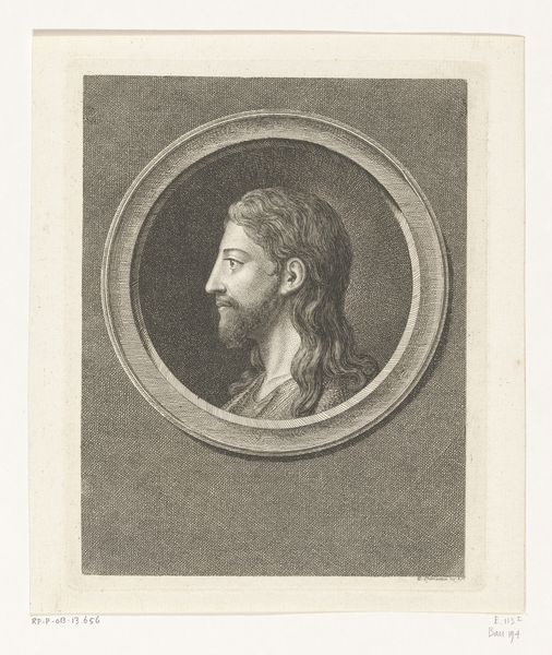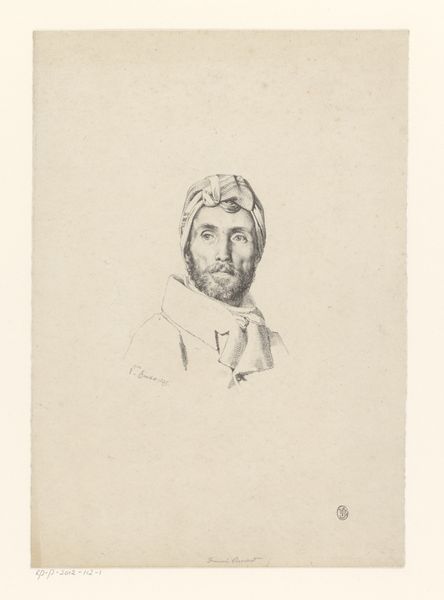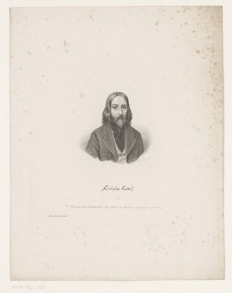 Curator: It strikes me as quite serene, almost stoic. Is it just me or does this portrait emanate a contemplative aura? Editor: Indeed! What we're looking at is a print identified as "Portret van Giorgione," dating back to somewhere between 1827 and 1854. The artist behind this engraving is Nicolas Maurin. It captures Giorgione, the enigmatic Renaissance painter. The realism employed is quite striking. Curator: The clothing is particularly interesting; the pleats have such presence. Do the garments reveal something of the sitter's status or position? Editor: Certainly. Costume always signifies social placement and ideology. The Renaissance style depicted hints at a reverence for the artistic legacy of figures like Giorgione. Such works helped construct an image of artistic genius—vital in the burgeoning art market and academy. Curator: It feels like more than just documentation, though. There’s a quietness to the gaze that seems intended to evoke a sense of artistic depth. His clothing seems draped and his eyes heavy. Editor: And the reproduction aspect bears thinking about. Engravings made art accessible to a wider public, shaping popular understanding. By creating repeatable images of these artist 'celebrities' their social status also became repeatable, mobile. Curator: A cultural artifact in itself. Each line contributes to constructing an artist figure we continue to remember, debate, and reflect upon today. Editor: Precisely. Consider too, that the medium is an engraving – not simply a sketch. The decision highlights permanence, solidifying Giorgioine's position within the visual culture. It underscores his lasting legacy. Curator: It makes you consider the original portrait the print may be based on—or even whether an "original" existed at all. Perhaps this is Maurin's creative imagining, and nothing more. Editor: Right. And regardless, that choice carries consequences for how the artist is consumed and situated within an artistic canon. This image doesn't only portray a figure, but acts as a symbol of artistic veneration and marketability of the figure. Curator: So this quiet face sparks a larger conversation, echoing how cultural images resonate through history. It offers continuity. Editor: A fitting final thought. Looking at the world with intention opens doors!