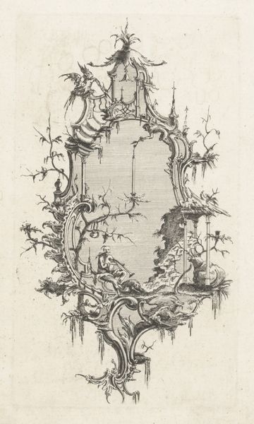 This is a cartouche with Hercules, made by Jean Charles Delafosse. Look closely, and you will see how the design is structured. The central oval depicts Hercules in action. Delafosse masterfully uses line work to create a sense of depth and movement, particularly in the figure of Hercules and the surrounding decorative elements. The composition, with its symmetrical yet dynamic arrangement of flags, weaponry, and foliage, invites us to consider the themes of power and virtue. Consider the semiotic codes at play: Hercules, a symbol of strength, is framed by symbols of military might and classical architecture. The cartouche as a whole functions as a signifier of status and taste, reflecting the values of the society for which Delafosse created this design. It invites ongoing interpretation, revealing how symbols of power and virtue are constructed and communicated through art.