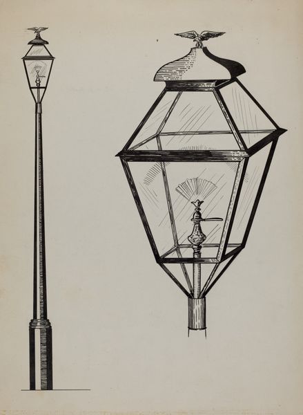Editor: So, here we have Florence Huston’s 1936 drawing, “Concord Stage Lamp,” created with pencil and graphite. It gives me such a theatrical feeling, almost like peering into a miniature stage set. What do you see in this piece? Curator: I see a poignant intersection of illumination and social commentary. In 1936, amidst the Great Depression, even something as seemingly simple as a stage lamp takes on deeper meaning. What spaces did this lamp illuminate? What narratives were being staged under its glow? The theater itself can be a potent site of resistance. Editor: That’s an interesting point. I was just thinking about its aesthetic qualities and didn’t really consider its historical context. Do you think Huston intended it as a commentary? Curator: It’s possible, or perhaps, it’s an invitation to think about the role of art and performance during times of societal upheaval. Art doesn’t exist in a vacuum. How do representations of light function ideologically, casting shadows, creating hierarchies? Even in the rendering, notice the weight of the dark medium contrasted with the thin strokes defining the source of illumination. Does that contrast anything in our world today? Editor: Wow, I never thought about it that way, about light representing those themes. I can now better appreciate what the drawing represents. Curator: Exactly! It becomes an exploration of social disparities and collective hope. Light has always served as a symbol of resistance in the arts, so it goes beyond this artwork to encompass artistic statements for generations. Editor: It definitely shifts my perspective to understanding art's influence. Thank you! Curator: My pleasure. I hope more artists will explore different ways art reflects, refracts, and reimagines a better world.