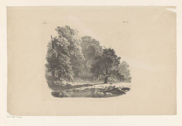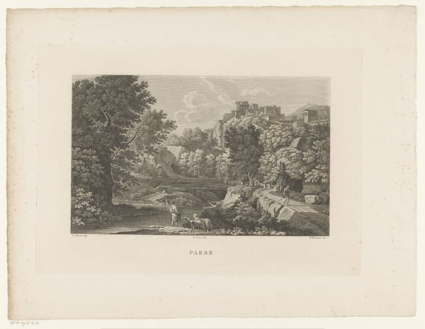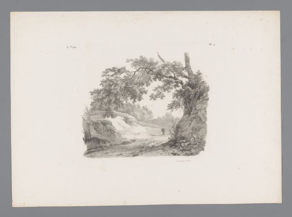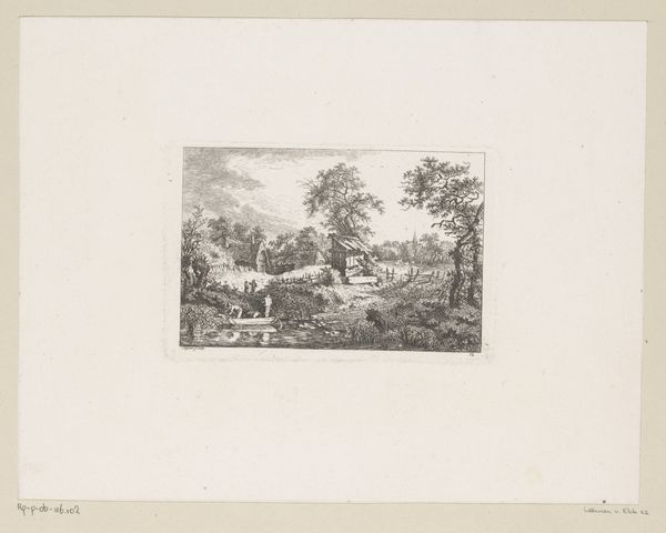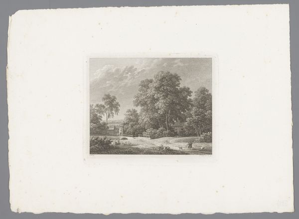 Barend Cornelis Koekkoek created this landscape with three figures using pen and brush in the nineteenth century. The painting is dominated by lush trees, evoking a sense of idyllic nature. Trees are powerful symbols, and here they suggest shelter, growth, and a connection to the earth. The motif of figures amidst nature has deep roots. Recall the classical Arcadia, a symbol of pastoral harmony, as well as the Garden of Eden, where mankind lived innocently among nature. Here, the figures seem to be enjoying a serene walk, suggesting a harmonious relationship with their environment. The image speaks to a longing for a simpler, more natural existence, a theme that recurs throughout art history. This yearning for nature may be interpreted as a subconscious desire to return to a state of innocence and peace. This image engages viewers on a deep level, tapping into our collective memory and subconscious associations. The cyclical progression of this symbol reminds us that our relationship with nature is ever evolving, constantly resurfacing and taking on new meanings in different historical contexts.