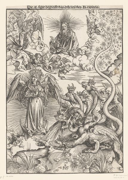 This woodcut, "Adoration of the Shepherds", was created by Christoffel van Sichem II. Observe how light emanates from the heavens, illuminating the newborn Christ, a beacon of hope. Angels hover above, bearing witness to the divine event, their presence echoing ancient motifs of celestial messengers. Note the shepherds, their postures conveying awe and reverence. This humility, a visual echo of poses found in classical depictions of supplication, carries through Renaissance art, where similar gestures express devotion and piety. The swaddling of the infant is a motif that resurfaces through Christian art, symbolizing not only vulnerability but also the binding of the divine to the earthly realm. This act transcends the immediate scene, linking to collective memory and the human desire for protection, reminiscent of how mothers have swaddled their children throughout time. Each element works together, engaging viewers on a subconscious level, reminding us of our shared emotional and psychological landscape. It's fascinating how symbols evolve, taking on new meanings while still resonating with our deepest emotions.