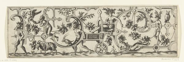 Editor: This is “Stilleven van kaas en fruit met een ornamentrand,” or Still Life of Cheese and Fruit with an Ornamental Border, made between 1668 and 1680. It's an engraving, and the artist’s listed as Joseph Kling. The detail is amazing, but what strikes me most is how it feels like two different pictures awkwardly combined. I mean, what do you see when you look at this? Curator: Ah, yes, a double vision! I feel that tension too, that delightful dance between the mundane and the aspirational. See how the overflowing cornucopia, brimming with nature's bounty, practically spills into that refined architectural space? It's a clever commentary, isn't it? Imagine yourself at a feast and then seeing the abundance of natural wonders surrounding your view. Editor: A commentary? Curator: Absolutely! In the Dutch Golden Age, these weren't just pretty pictures, you know. They spoke to wealth, prosperity, but also to a kind of moral reckoning. "Enjoy it while it lasts," they seem to whisper, like a fleeting scent. It makes one ponder our contemporary cornucopia, our own abundance, and what borders we've carefully crafted, or awkwardly mashed together. And what's the emotional effect, I wonder, of placing the bust in a still life? Does that alter its usual significance for you? Editor: That’s really fascinating. So the still life is both celebrating and critiquing excess. I’ll definitely look at it differently now, thinking about it as a meditation on morality as much as a celebration of material goods. Thanks. Curator: You're welcome! It's a reminder that art often asks more questions than it answers.
