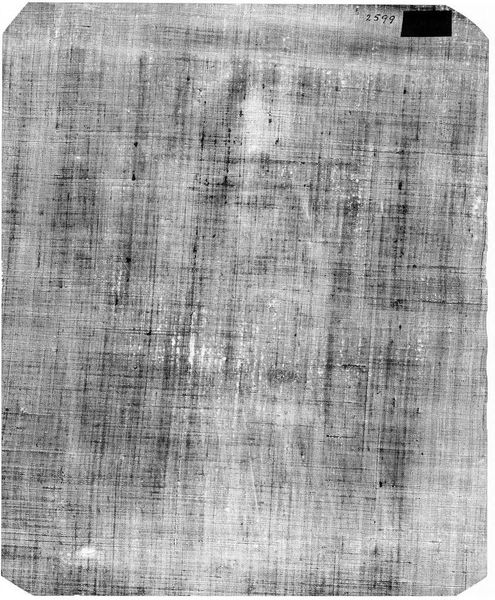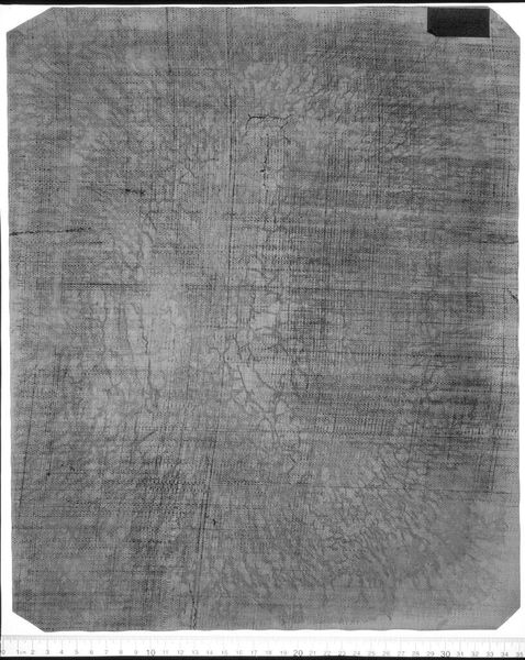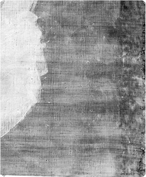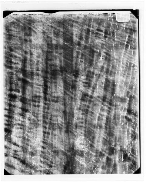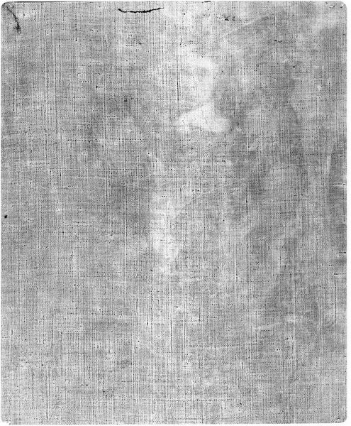 Curator: This is an X-radiograph of "Samuel Johnson," a portrait by Lawrence Kilburn, housed here at the Harvard Art Museums. It presents a rather ghostly visage. Editor: Indeed, it's like seeing through the surface, revealing the bare bones of the composition, the texture of the canvas itself. Curator: Exactly. The linear structure of the canvas becomes incredibly prominent, almost obscuring the subject matter. Editor: I'm fascinated by what this reveals about the hidden layers of creation. What types of materials were used, and what does this reveal about art making at the time? Curator: The density of the paint layers in the face are quite evident, creating areas of stark contrast within the composition. Editor: It challenges our notion of portraiture. We see the labor, the materiality, not just the image. Curator: Precisely, a process normally hidden from view. Editor: A fascinating insight into the life of a painting, and its creation. Curator: A unique perspective, indeed.